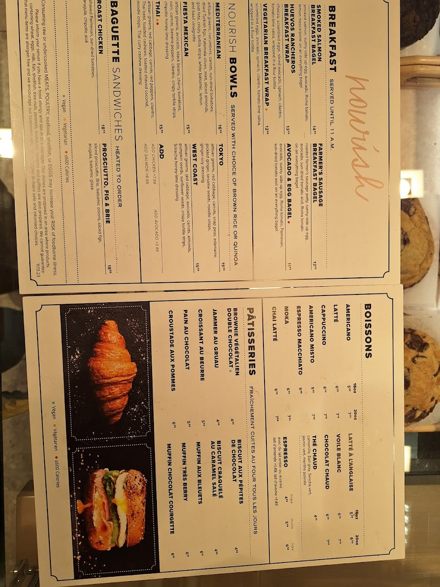 The menu highlights include hearty breakfast options like the Smoked Salmon Breakfast Sandwich and vegetarian-friendly wraps, alongside fresh, flavorful sandwiches such as the Avocado Salmon Sandwich and Roast Chicken Baguette. For a lighter touch or a sweet pause, pastries like the Apple Cruffin and Vegan Double Chocolate Brownie balance well with their selection of freshly brewed juice and coffee.